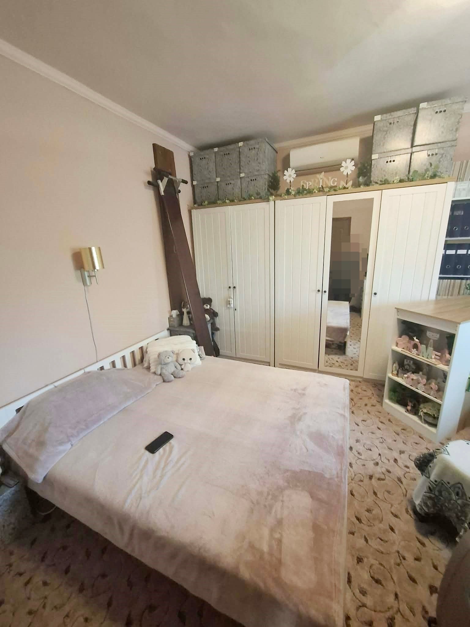 A hosszú közlekedőnek köszönhetően a három hálószoba jól elkülönül, így mindenkinek jut egy kis saját tér, egy kis csend.